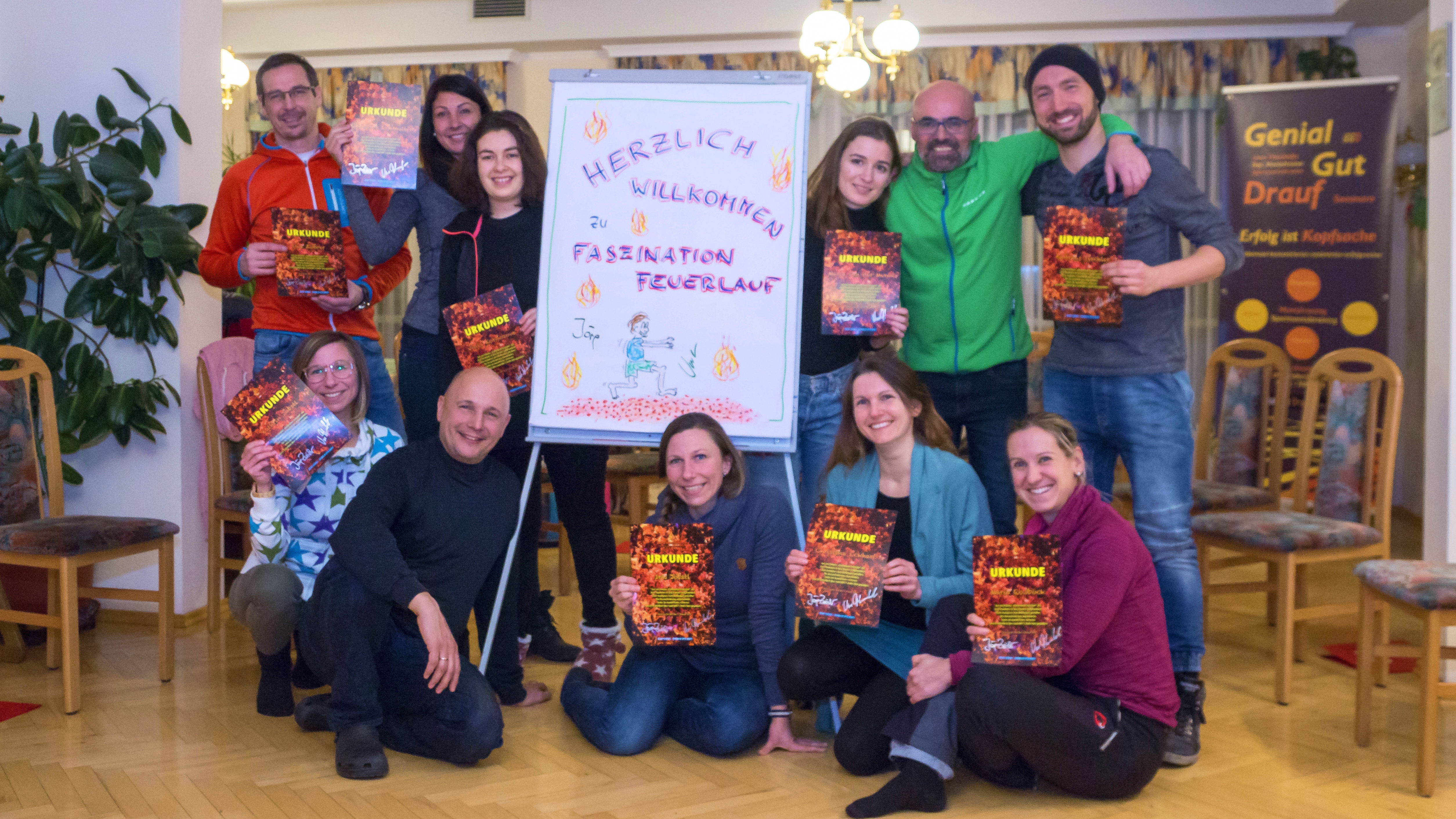 auf Alkohol verzichten!Die Teilnahme erfolgt in Eigenverantwortung (bei Jugendlichen mit Einverständnis der Erziehungsberechtigten). Wir bereiten die TeilnehmerInnen bestmöglich auf den Feuerlauf vor. Dennoch ist es uns nicht möglich zu wissen, ob der/die Einzelne auch innerlich tatsächlich dazu bereit ist. Daher können wir keine Haftung für allfällige Verletzungen übernehmen. Die Teilnahme am Seminar ist freiwillig, ebenso obliegt die Entscheidung über die Glut zu laufen, jedem Teilnehmer selbst.